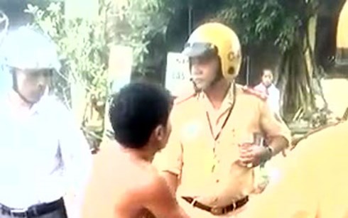Lái xe say rượu, cởi trần chửi cảnh sát giao thông