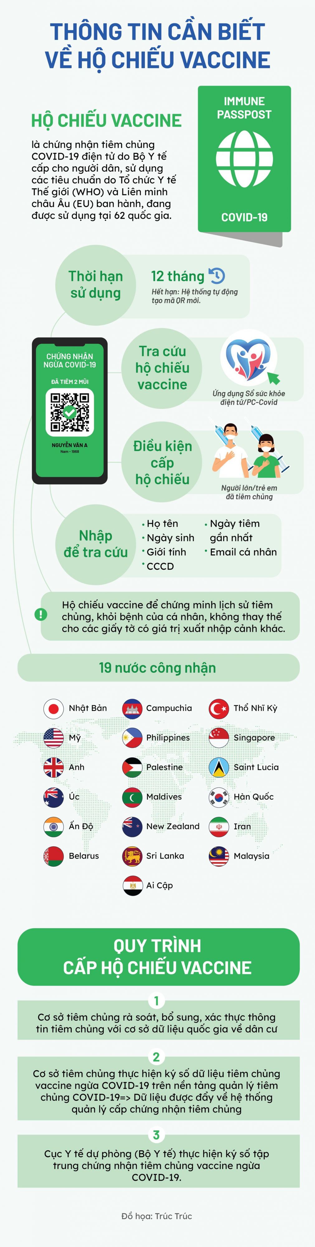 Hộ chiếu vaccine: là chứng nhận tiêm chủng COVID-19 điện tử do Bộ Y tế cấp cho người dân, sử dụng các tiêu chuẩn do Tổ chức Y tế Thế giới (WHO) và Liên minh châu Âu (EU) ban hành, đang được sử dụng tại 62 quốc gia.
