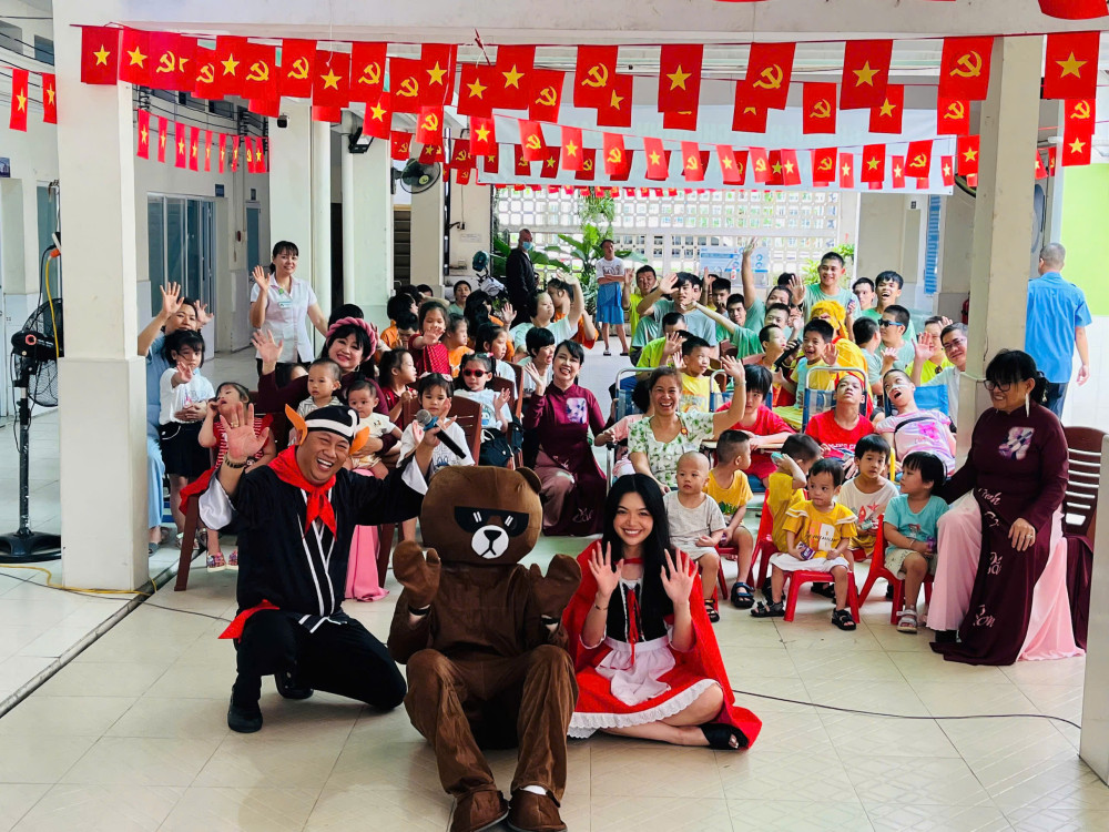 Các em nhỏ tại trung tâm không giấu được niềm vui và sự xúc động khi được nhìn thấy những nhân vật quen thuộc trong truyện cổ tích như chú gấu, cô bé quàng khăn đỏ, hiện diện giữa đời thực qua phần hóa trang sinh động của các nghệ sĩ, mang theo tiếng cười và nguồn động viên tinh thần đầy ý nghĩa.