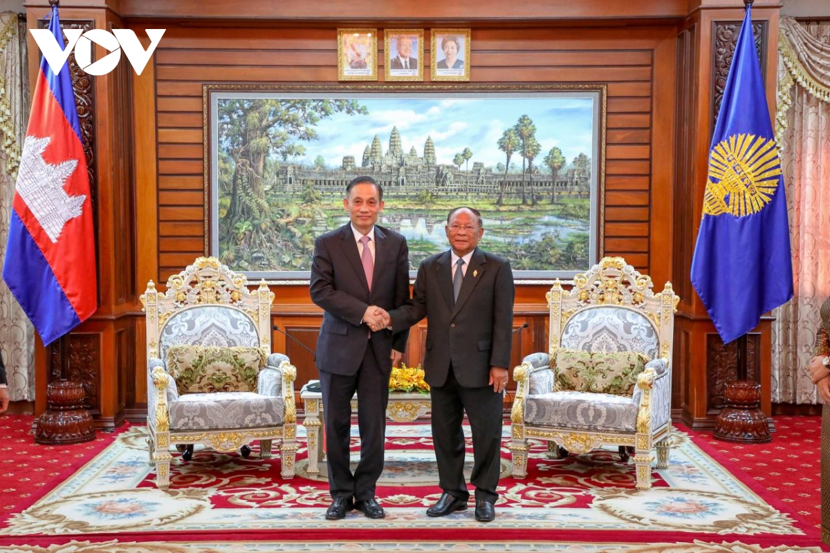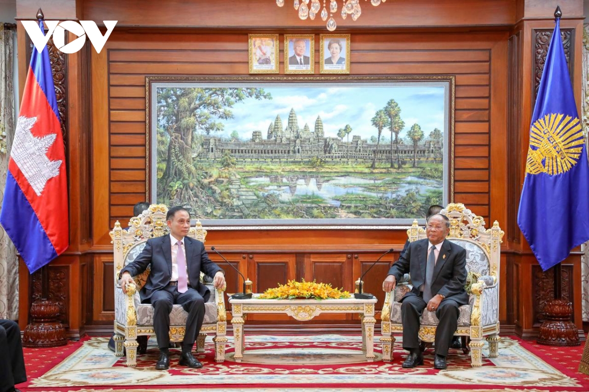 Lãnh đạo Đảng, Thượng viện, Quốc hội, Chính phủ Campuchia tiếp ông Lê Hoài Trung