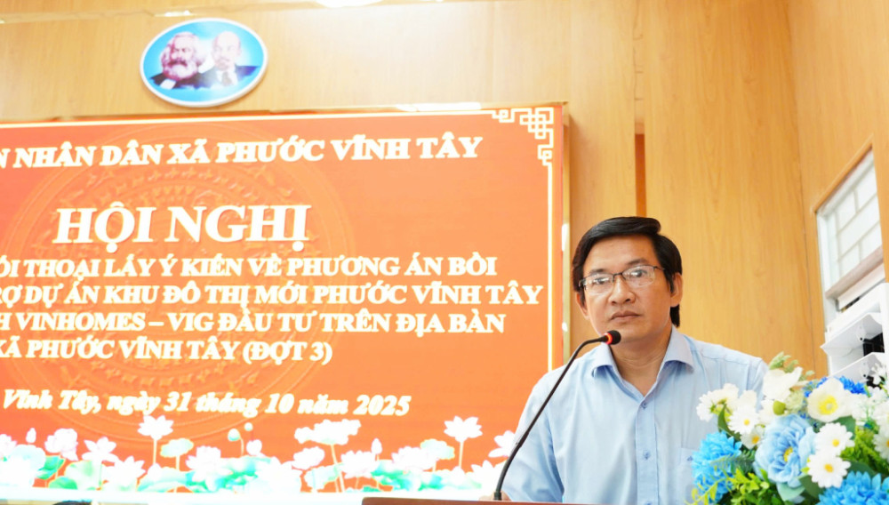 Ngày 31/10, UBND xã Phước Vĩnh Tây, tỉnh Tây Ninh tổ chức Hội nghị tiếp xúc, đối thoại, lấy ý kiến người dân về phương án bồi thường, hỗ trợ và tái định cư (đợt 3) đối với dự án Khu đô thị mới Phước Vĩnh Tây.