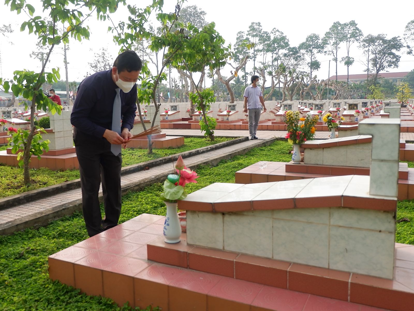 Phó Chủ tịch UBND tỉnh - Phạm Tấn Hòa thắp hương lên các phần mộ liệt sĩ