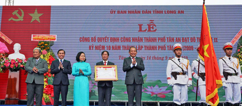 Ngày 14/9, TP.Tân An, tỉnh Long An long trọng tổ chức Lễ công bố Quyết định công nhận TP.Tân An đạt đô thị loại II và chào mừng 10 năm thành lập thành phố.