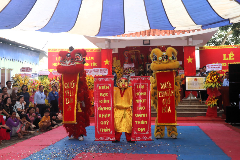 Tiết mục biểu diễn lân sư rồng phục vụ Nhân dân trong lễ dâng hương tưởng nhớ Anh hùng dân tộc Nguyễn Trung Trực tại Xóm Nghề