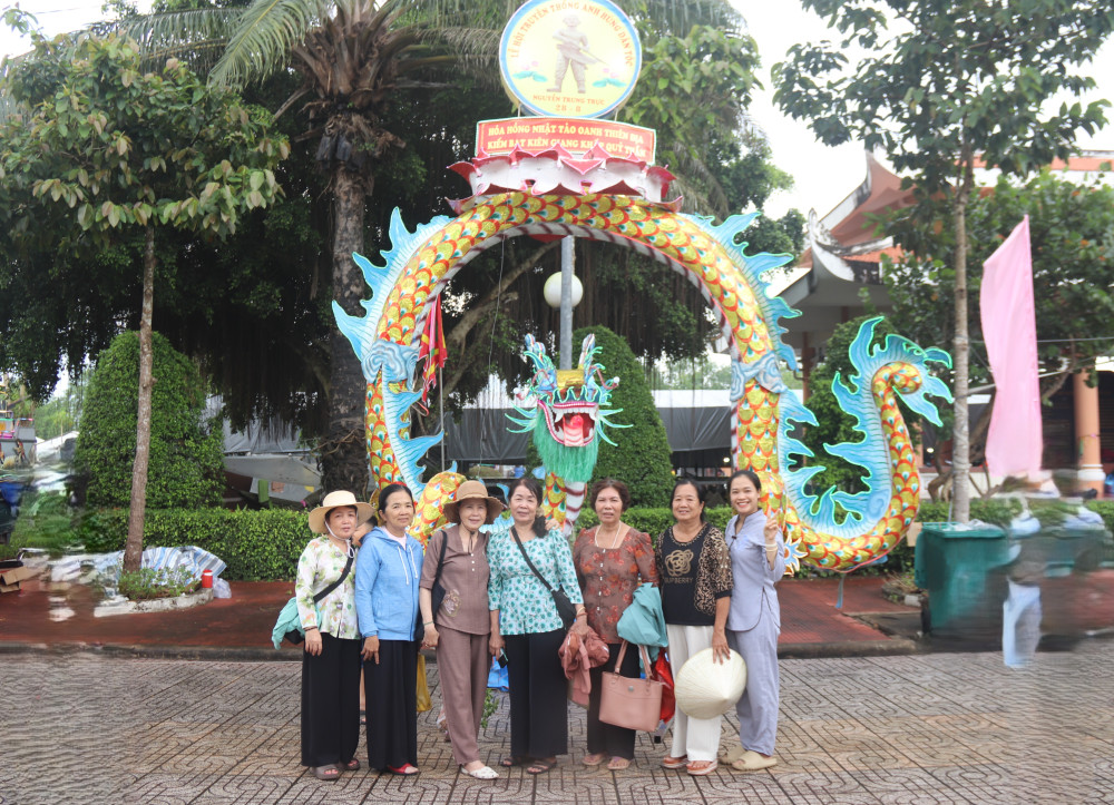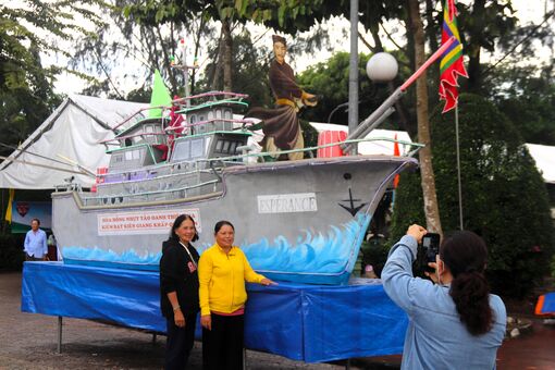 Du khách thập phương sau khi thắp hương viếng cụ Nguyễn, thưởng thức tiệc chay ấm cúng, háo hức check-in cùng nhiều tiểu cảnh đặc sắc, trong đó nổi bật là mô hình tàu L’Espérance – gắn liền với chiến công lừng lẫy của Anh hùng dân tộc Nguyễn Trung Trực tại Vàm Nhựt Tảo năm 1861
