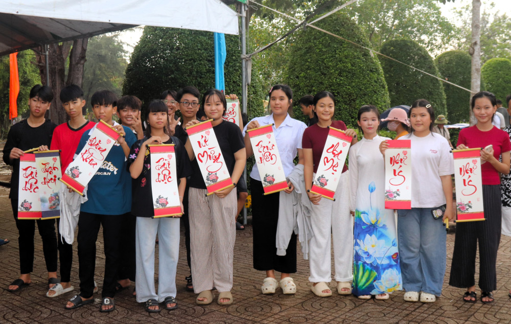 Những ngày qua, Câu lạc bộ Thư pháp Tân Trụ tổ chức hoạt động “cho chữ” miễn phí, mang đến cho du khách những bức thư pháp ý nghĩa cùng lời chúc tốt đẹp trong dịp lễ giỗ