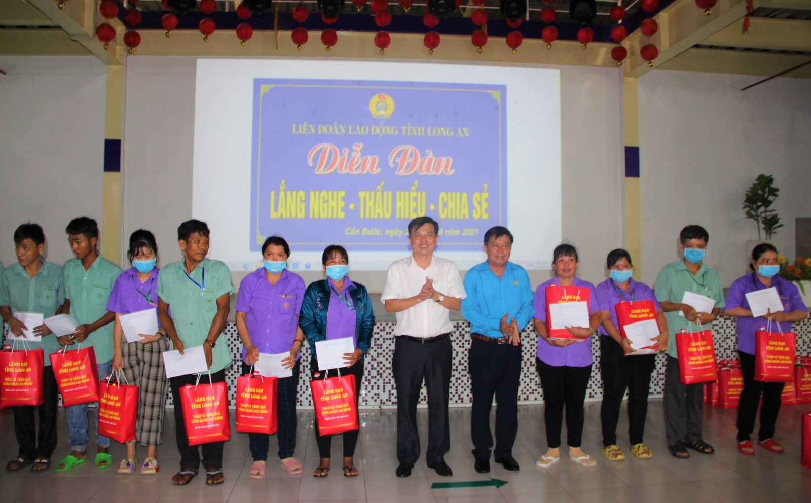 Chiều 29/4, Liên đoàn Lao Động tỉnh Long An tổ chức Diễn đàn “Lắng nghe - Thấu hiểu - Chia sẻ” tại Công ty TNHH May Thêu Thuận Phương (xã Long Cang) và Nhà trọ Nguyễn Văn Trà (xã Long Định), huyện Cần Đước. Đến dự có Phó Bí thư Thường trực Tỉnh ủy - Nguyễn Thanh Hải; lãnh đạo huyện Cần Đước cùng đại diện một số sở, ngành tỉnh và hơn 150 công nhân, lao động (CNLĐ).