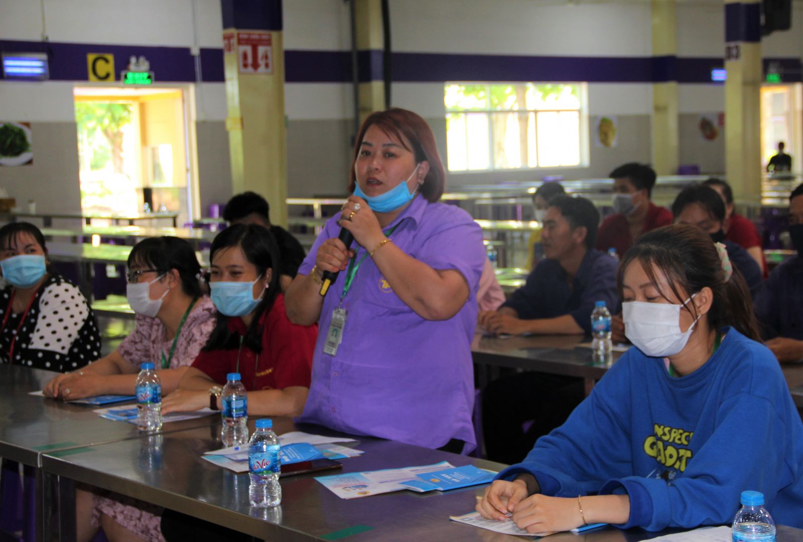 Tại diễn đàn, công nhân lao động trình bày những vấn đề liên quan việc làm, đời sống,... đến các cấp lãnh đạo và tổ chức công đoàn