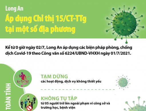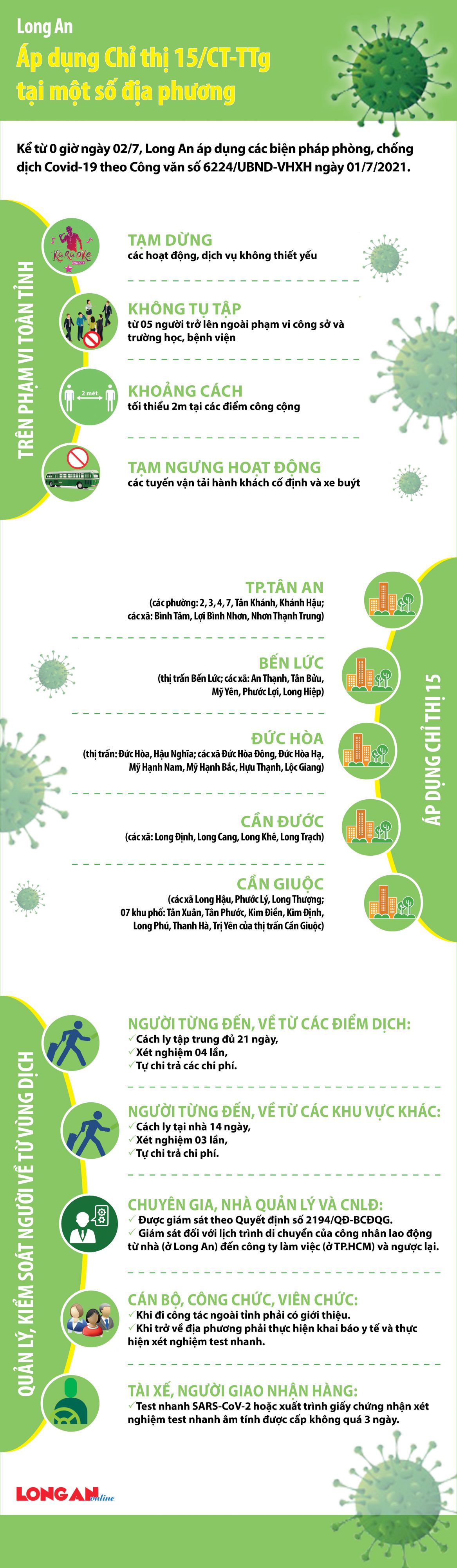 Kể từ 0 giờ ngày 02/7, Long An áp dụng các biện pháp phòng, chống dịch Covid-19 theo Công văn số 6224/UBND-VHXH ngày 01/7/2021.