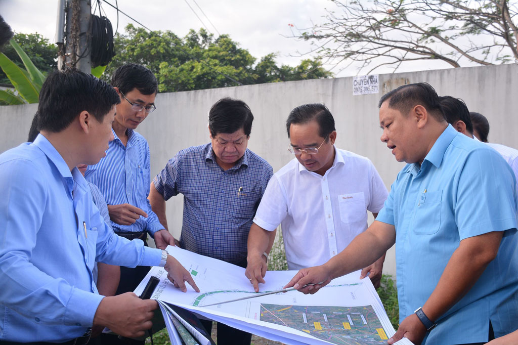 Phó Chủ tịch UBND tỉnh Nguyễn Minh Lâm kiểm tra điểm hư hỏng trên đường Vành đai TP.Tân An