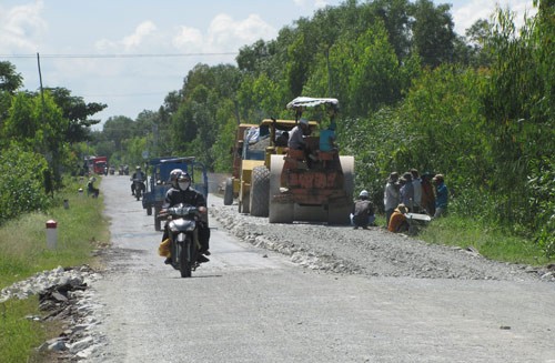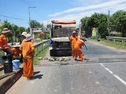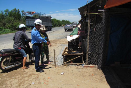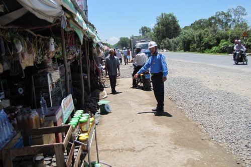 Nhằm lập lại trật tự buôn bán, thông thoáng lòng lề đường, Thanh tra Giao thông Cục đường bộ (Chi cục IV.2) phối hợp Phòng Kinh tế hạ tầng, Cảnh sát giao thông huyện Thạnh Hóa, tỉnh Long An giải tỏa những trường hợp lấn chiếm lòng lề đường. Đơn vị sửa chữa giao thông giặm vá ổ gà, trùng tu đoạn đường xuống cấp. Phóng viên ghi lại một số hình ảnh trên tuyến QL62, N2 ngày 27-8-2015./.
