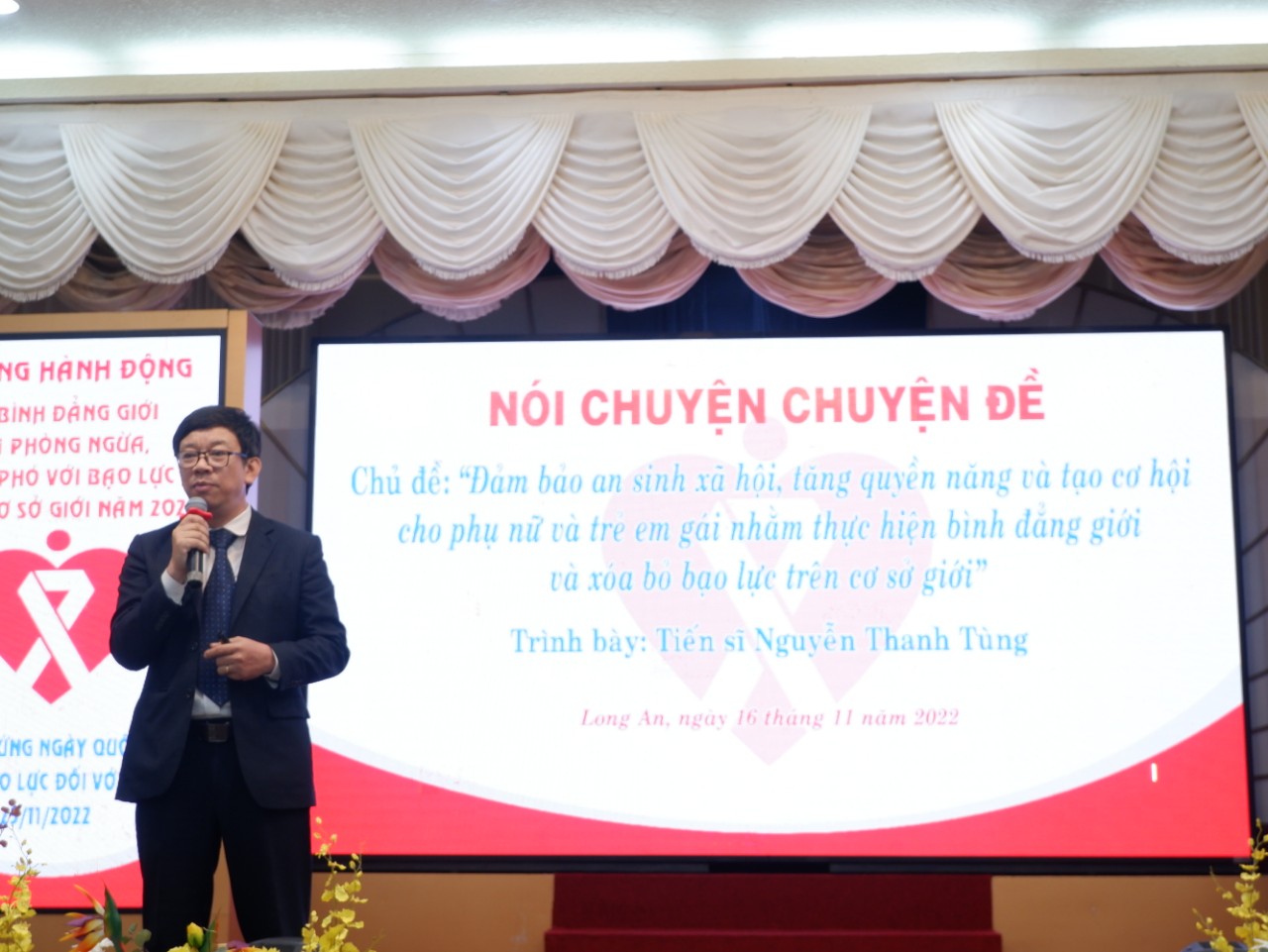 Ngày 16/11, UBND tỉnh Long An tổ chức Lễ phát động Tháng hành động vì bình đẳng giới và phòng ngừa, ứng phó với bạo lực trên cơ sở giới năm 2022, với chủ đề “Đảm bảo an sinh xã hội, tăng quyền năng và tạo cơ hội cho phụ nữ và trẻ em gái nhằm thực hiện bình đẳng giới và xóa bỏ bạo lực trên cơ sở giới”.