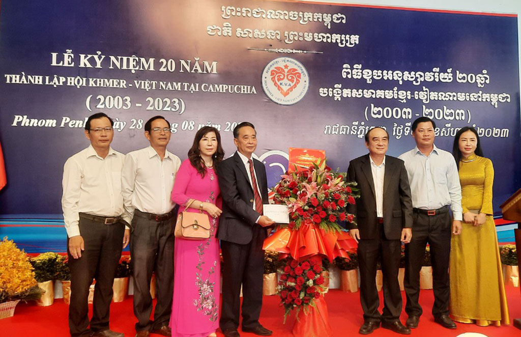Đoàn công tác tỉnh Long An do Ủy viên Ban Thường vụ Tỉnh ủy, Chủ tịch UBMTTQ Việt Nam tỉnh - Trương Văn Nọ làm trưởng đoàn vừa tham dự Lễ kỷ niệm 20 năm thành lập Hội Khmer - Việt Nam tại Phnom Penh, Vương quốc Campuchia (2003 - 2023).