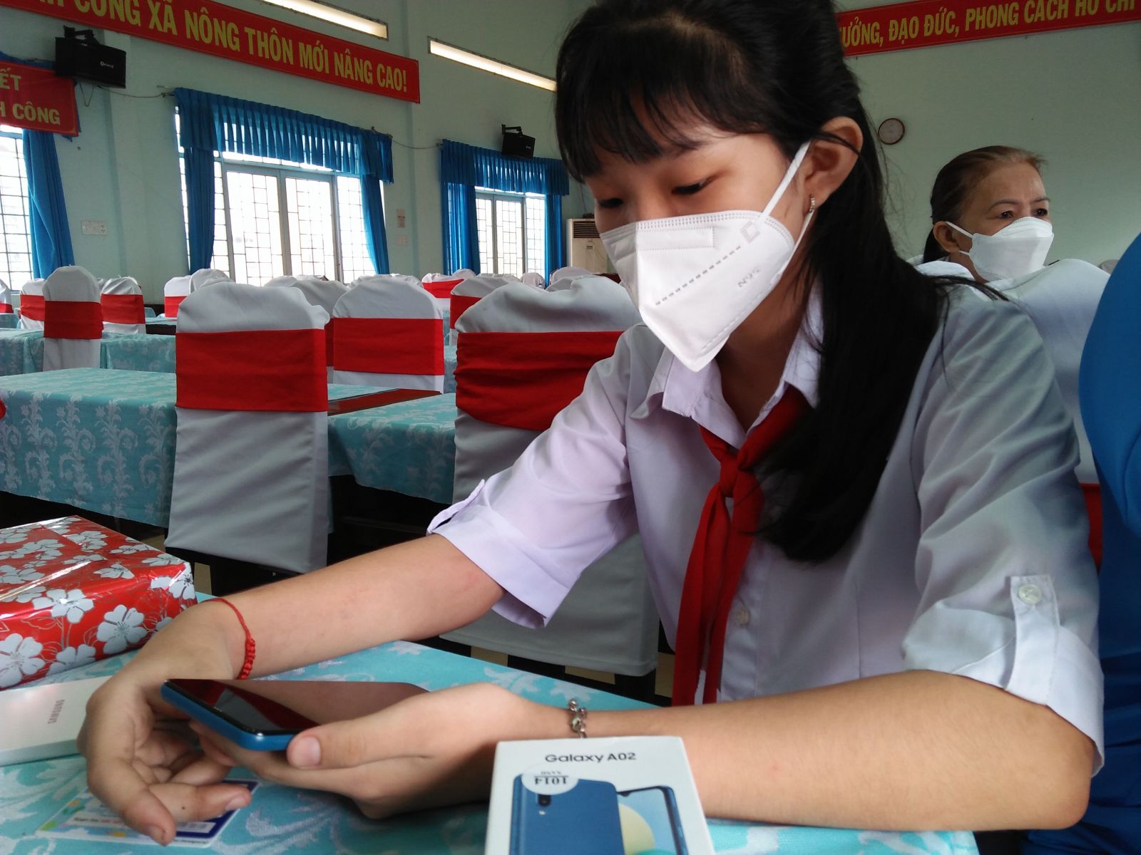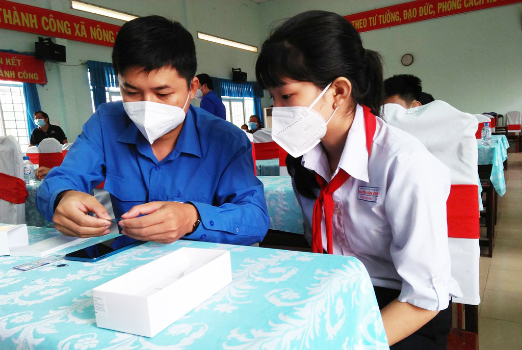 Long An: Trao 12 suất quà hỗ trợ các em học sinh học trực tuyến