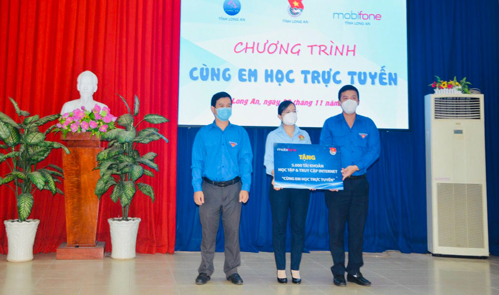 Ngày 20/11, Tỉnh đoàn Long An, Sở Giáo dục và Đào tại phối hợp Mobifone Long An tổ chức chương trình “Cùng em học trực tuyến”, trao tặng các trang thiết bị, ứng dụng công nghệ viễn thông cho các em học sinh có hoàn cảnh khó khăn bị ảnh hưởng bởi đại dịch Covid-19 có điều kiện tham gia học trực tuyến trên địa bàn huyện Cần Giuộc.