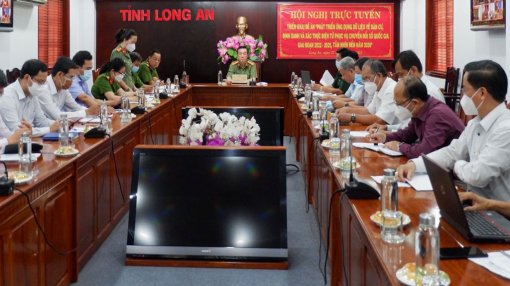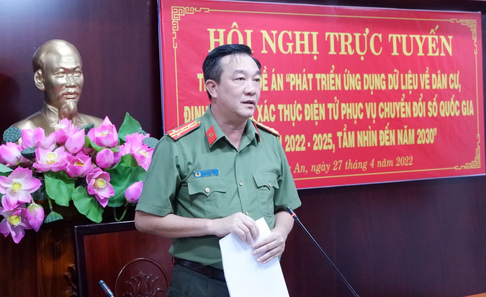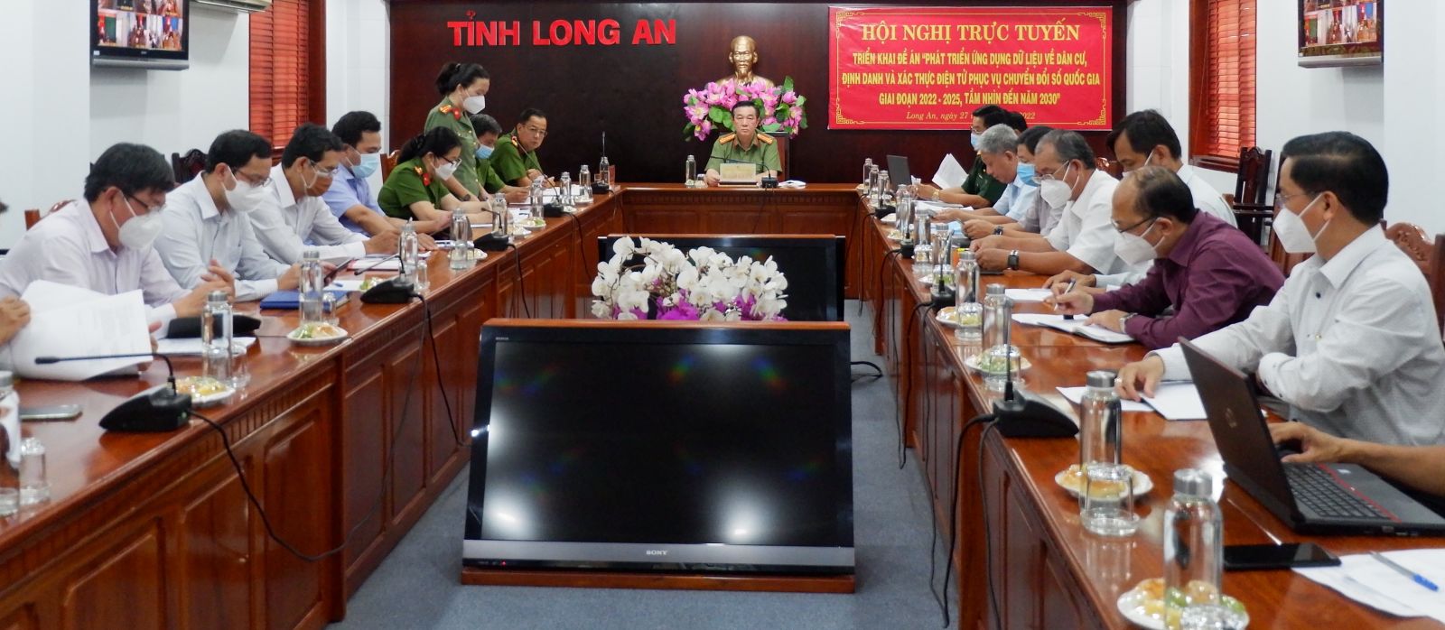 Chiều 27/4, UBND tỉnh Long An tổ chức Hội nghị trực tuyến triển khai Đề án “Phát triển ứng dụng dữ liệu về dân cư, định danh và xác thực điện tử phục vụ chuyển đổi số quốc gia giai đoạn 2022 - 2025, tầm nhìn đến năm 2030” (gọi tắt Đề án 06) của Thủ tướng Chính phủ. Giám đốc Công an tỉnh, Tổ phó Thường trực Tổ Công tác triển khai Đề án 06 của tỉnh – Đại tá Lâm Minh Hồng chủ trì hội nghị.