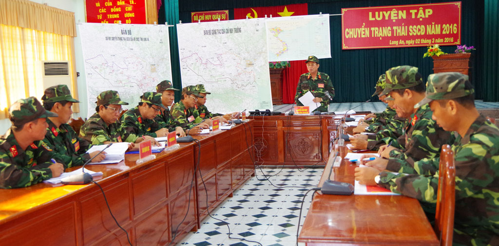 Bộ Chỉ huy Quân sự (CHQS) tỉnh tổ chức luyện tập chuyển trạng thái sẵn sàng chiến đấu (SSCĐ) năm 2016 với những nội dung huấn luyện tập trung vào thực hành thứ tự các bước chuyển trạng thái SSCĐ “tăng cường” lên cao. Tham gia luyện tập là các đồng chí chỉ huy, cán bộ cơ quan Bộ CHQS tỉnh và các phân đội trực thuộc.