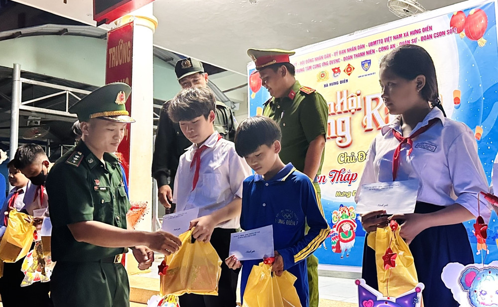 Hòa cùng không khí đón tết Trung Thu rộn ràng, tại các địa phương biên giới của tỉnh Tây Ninh, các chiến sĩ "'quân hàm xành" cùng chính quyền địa phương tổ chức nhiều hoạt động nhằm mang lại ngày hội trăng rằm đúng nghĩa cho các em.
