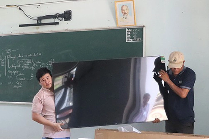 Trường THPT số 3 Phù Cát tháo 7 tivi vận động từ ban đại diện cha mẹ học sinh - Ảnh: BÁO BÌNH ĐỊNH
