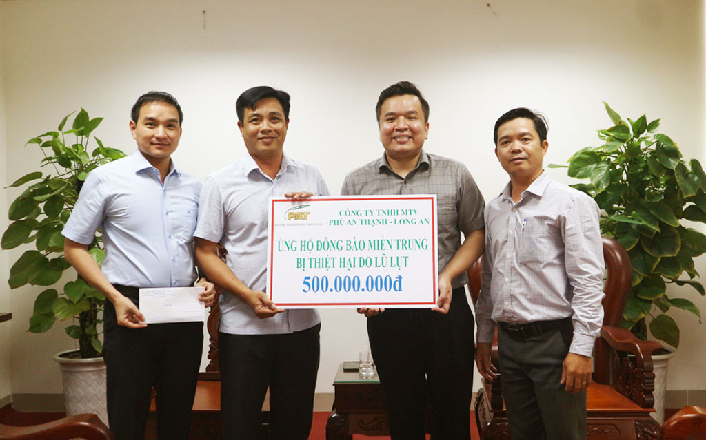 Chiều 27/10, Ủy ban Mặt trận Tổ quốc Việt Nam (UB.MTTQVN) tỉnh Long An vừa tiếp nhận 500 triệu đồng từ Công ty TNHH MTV Phú An Thạnh – Long An ủng hộ đồng bào miền Trung bị thiệt hại do bão, lũ.