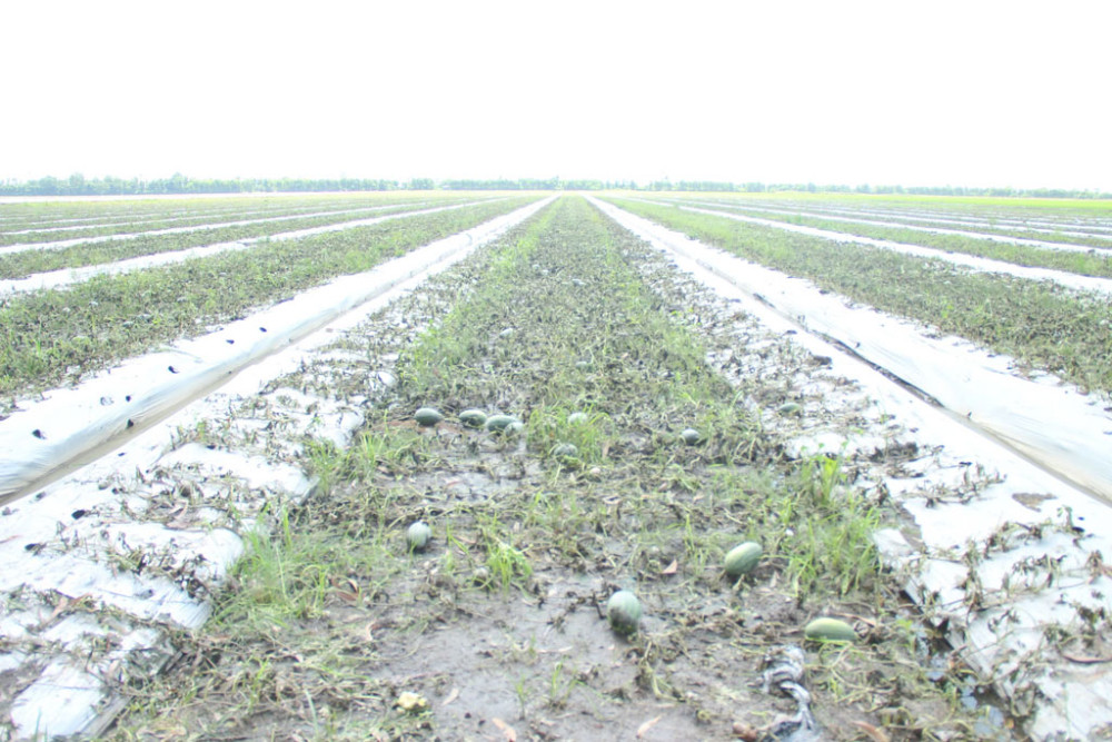 Ruộng dưa hấu bị thiệt hại tại xã Bình Thạnh, huyện Mộc Hóa