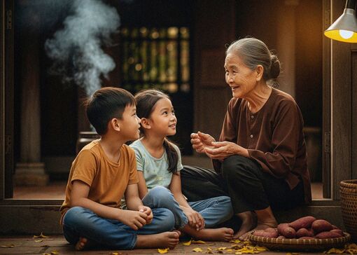 Ngày đó, vào mỗi buổi sáng đầu thu, tôi và những đứa bạn trong xóm thường chạy ra ngoài chơi. Mùa thu như một bức tranh tĩnh lặng khi những chiếc lá vàng rơi chầm chậm, phủ đầy trên con đường đất nhỏ. Chúng tôi cứ thế nắm tay nhau chạy theo những con phố, thả diều hay chơi nhảy dây, hồn nhiên như những đứa trẻ chưa từng biết đến lo âu. Có lẽ, mùa thu trong ký ức tôi luôn gắn liền với những trò chơi ngoài trời ấy. Có những ngày, trời mưa nhẹ, chúng tôi chạy ra ngoài, đùa nghịch trong vũng nước mưa. Tiếng cười vang lên như những chiếc chuông ngân, rộn ràng, không chút lo âu. Tôi nhớ, sau những trò chơi nghịch ngợm ấy, cả đám tụ tập lại dưới hiên nhà, ngồi nghe bà kể chuyện. Ai cũng nhao nhao, giành chỗ ngồi gần bà nhất, những ánh mắt sáng ngời chờ đợi từng lời kể. Bà nội là người kể chuyện hay nhất mà tôi từng biết. Giọng kể ấm áp, nhẹ nhàng, bà kể về những câu chuyện cổ tích xa xưa, những con thỏ thông minh, những nàng tiên đẹp đẽ hay những cuộc phiêu lưu kỳ thú của các chàng trai dũng cảm. Nhỏ Lan ngồi im, mắt tròn xoe như muốn nuốt từng từ của bà, còn Tí thì ngồi ngay sát bên, miệng mấp máy theo từng câu chuyện. Cả đám trẻ con chúng tôi, ai cũng háo hức, lắng nghe như thể những lời kể ấy là phép màu đưa chúng tôi vào những thế giới kỳ diệu mà bà đã vẽ ra. Mùa thu ấy, dù không có những cuộc phiêu lưu kỳ diệu như trong truyện cổ tích nhưng tôi luôn cảm thấy mình như một nhân vật trong những câu chuyện ấy. Khi ánh nắng vàng yếu dần, xuyên qua những tán lá, chúng tôi ngồi im lặng dưới bóng cây, trò chuyện về những ước mơ nhỏ bé mà mỗi người mang trong lòng. Làn gió thu nhẹ nhàng thổi qua, tạo thành những âm thanh xào xạc của lá, như những lời thì thầm của thiên nhiên. Chúng tôi cứ thế ngồi bên nhau, cảm nhận hơi thở của thu, để rồi mỗi lần nhớ lại, cảm giác bình yên ấy vẫn đọng lại trong lòng.