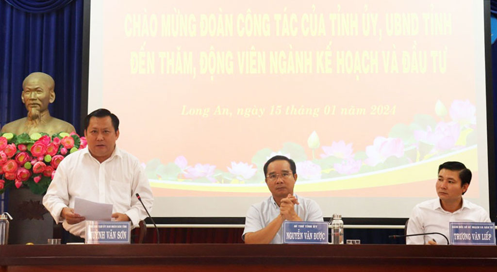 Chiều 15/01, Bí thư Tỉnh ủy, Chủ tịch HĐND tỉnh Long An - Nguyễn Văn Được; Phó Chủ tịch UBND tỉnh - Huỳnh Văn Sơn đến thăm, động viên ngành Kế hoạch và Đầu tư (KH&ĐT) nhân dịp năm mới 2024.