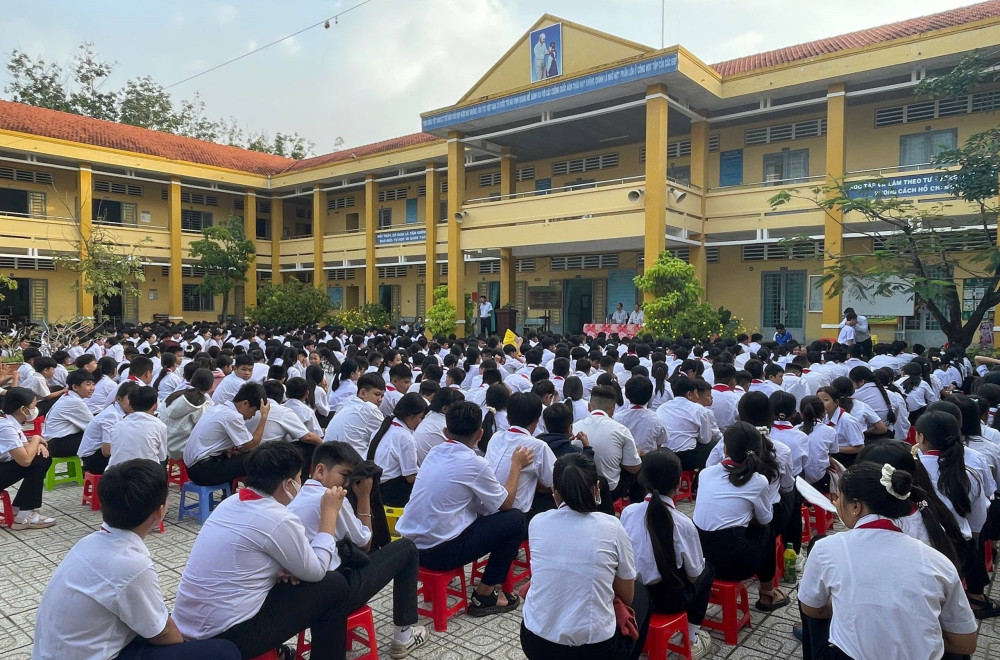 Chi cục Dân số truyền thông trực tiếp tại Trường THCS Tây Sơn khu vực Tân Biên (Ảnh: Chi cục Dân số)