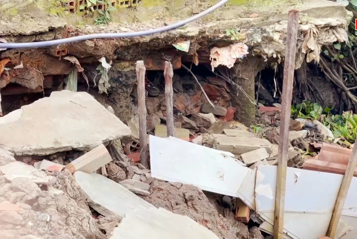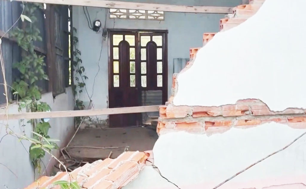 Một mảng tường nhà dân bị sạt lở đổ gãy