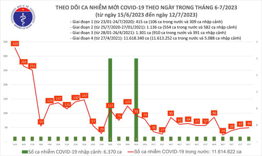 Bản tin phòng chống dịch COVID-19 ngày 12/7 của Bộ Y tế cho biết có 49 ca mắc mới COVID-19. Trong ngày có 13 bệnh nhân khỏi. Hôm nay là ngày thứ 4 liên tiếp không còn bệnh nhân COVID-19 nặng phải thở oxy, thở máy.