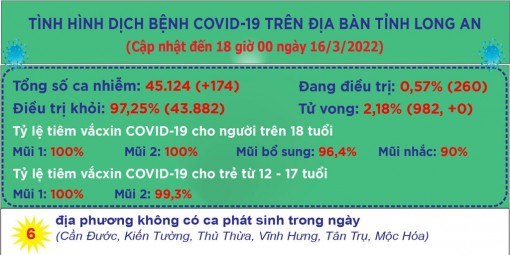 Đến 18 giờ ngày 17/3, Long An ghi nhận 45.280 ca mắc Covid-19; trong 24 giờ qua có 156 ca mắc mới.