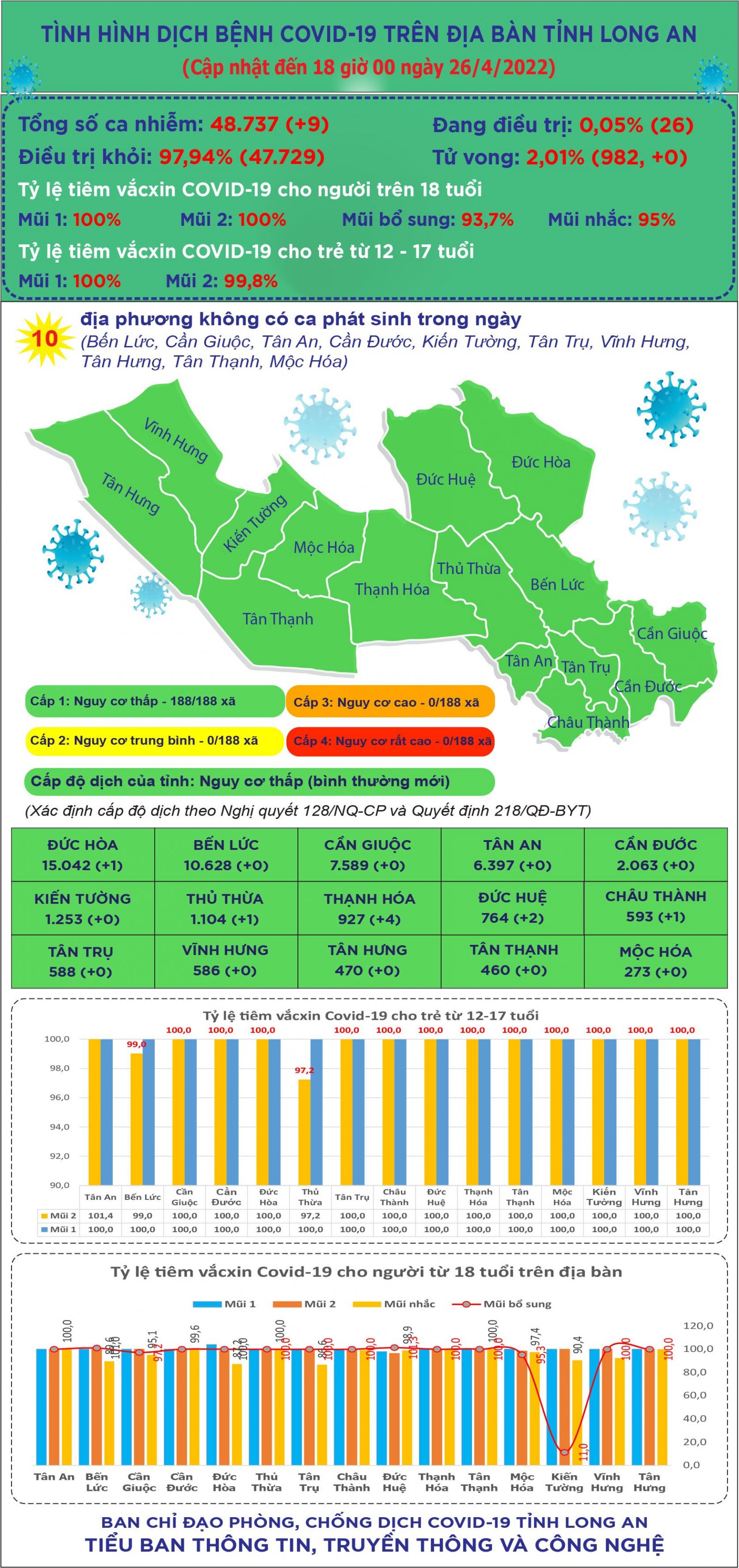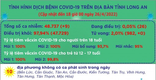 Ngày 26/4, Long An ghi nhận 9 ca mắc Covid-19 mới