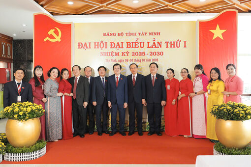 Chúng tôi nhớ người đầu tiên vào vị trí có khung hình màu vàng ghi chữ đỏ “Đảng bộ tỉnh Tây Ninh - Đại hội đại biểu lần thứ I”, hai bên là cờ Đảng và cờ Tổ quốc, là đồng chí Phó Giám đốc Sở Văn hóa Thể thao và Du lịch tỉnh Tây Ninh. Sự “mở hàng” với nhân vật chính xinh tươi như thế đã thu hút hàng chục đại biểu khác xếp hàng chờ đến lượt. Sau khi các đại biểu chụp cá nhân, các đoàn đại biểu của 96 xã, phường cũng đến vị trí, kiên nhẫn chờ chụp và in ảnh mang về kỷ niệm.