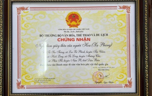 UBND huyện Mường Chà, tỉnh Điện Biên vừa tổ chức lễ công bố và trao chứng nhận Di sản văn hóa phi vật thể quốc gia “Nghề làm giày thêu của người Xạ Phang”.