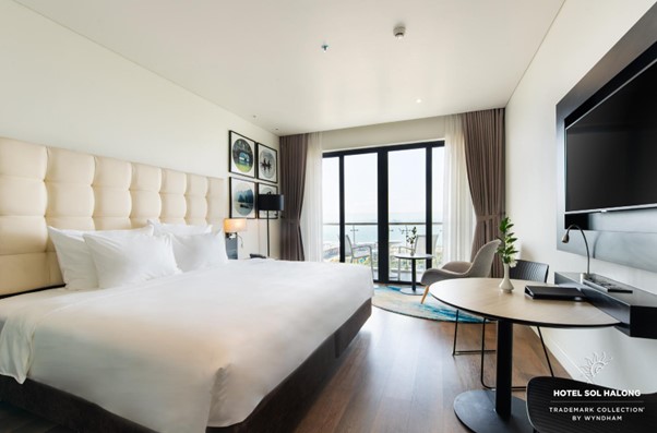 Nhắc đến trải nghiệm ngắm vịnh từ khách sạn, A La Carte Residence Ha Long Bay chắc chắn nằm trong danh sách “đáng ở”. Đây là tổ hợp căn hộ – khách sạn Hạ Long cao cấp, với tất cả các phòng đều có ban công và cửa kính lớn hướng biển. Buổi sáng, bạn có thể nhâm nhi ly cà phê và ngắm bình minh rực rỡ; buổi tối, chỉ cần kéo rèm là trước mắt là hàng nghìn ánh đèn lung linh trên vịnh.
