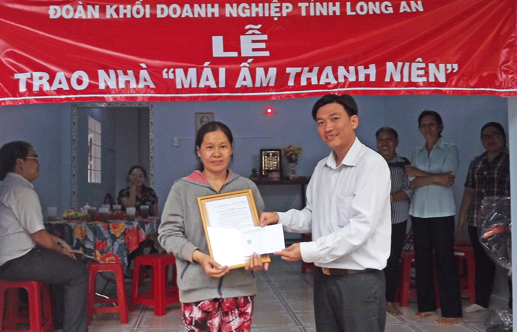 Công trình thanh niên với chủ đề Ngôi nhà 100 đồng (Mái ấm thanh niên) của Đoàn khối Doanh nghiệp, tỉnh Long An không chỉ hỗ trợ đoàn viên, thanh niên (ĐVTN) có hoàn cảnh khó khăn mà còn thể hiện sự sẻ chia, tinh thần tương thân, tương ái.