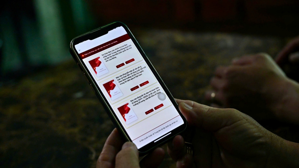 Người dân Mỹ Yên góp ý dự thảo các văn kiện Đại hội Đảng trên VNeID