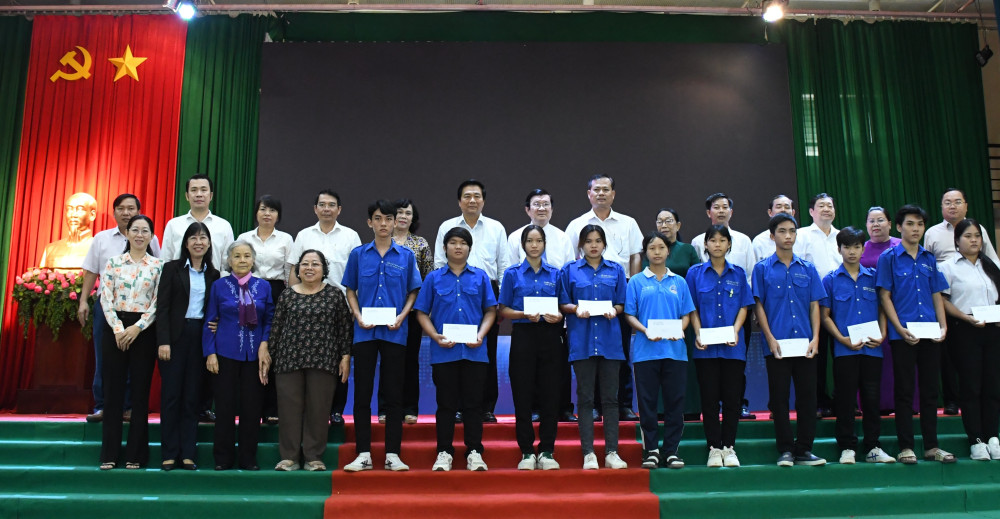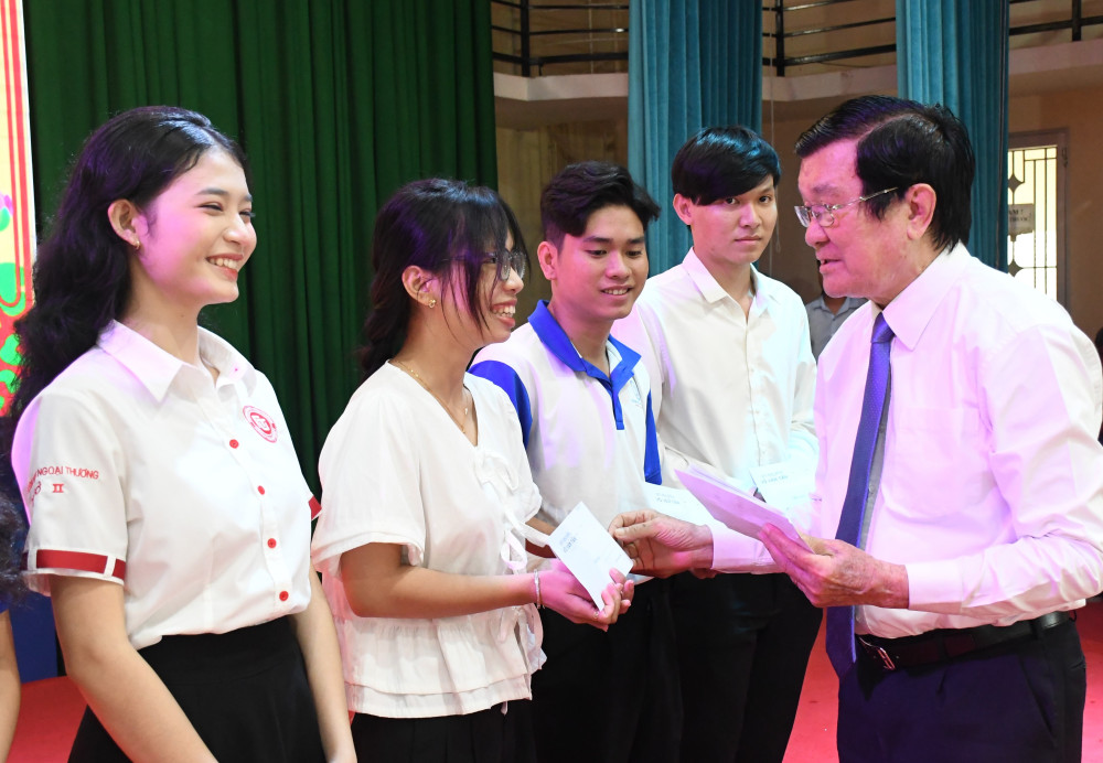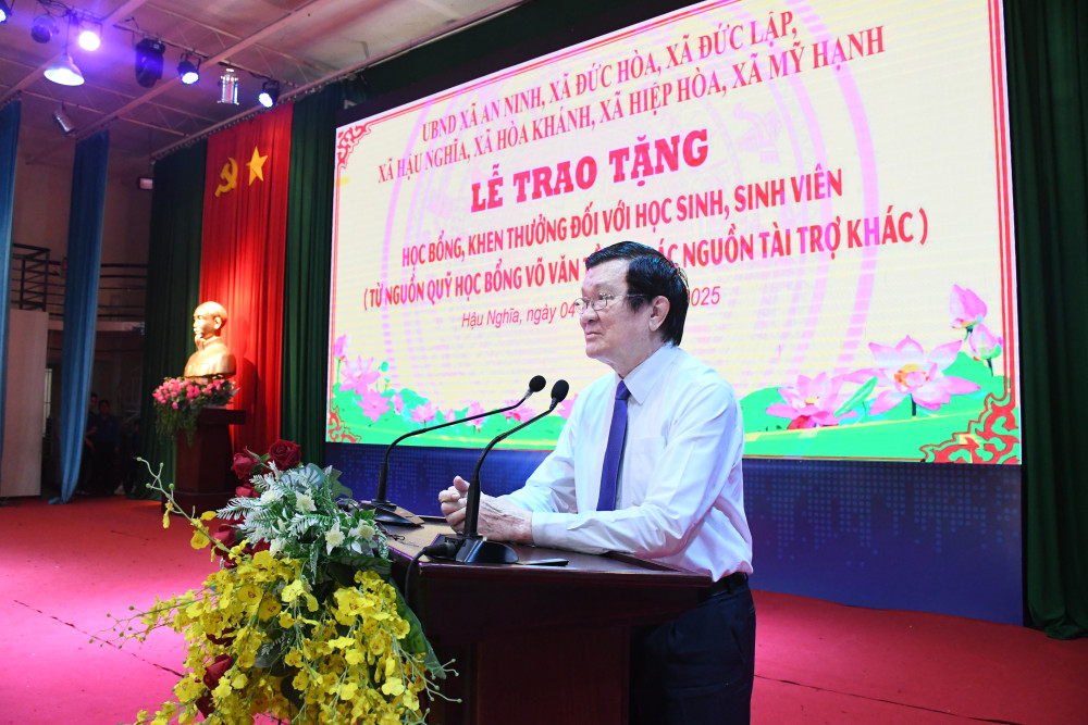 Nguyên Chủ tịch nước Trương Tấn Sang dự trao học bổng Võ Văn Tần tại xã Hậu Nghĩa