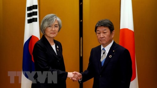 Ngoại trưởng Nhật Bản Toshimitsu Motegi và người đồng cấp Hàn Quốc Kang Kyung-wha đi đến nhất trí trên tại cuộc gặp kéo dài 10 phút tối 15/12 bên lề hội nghị bộ trưởng các nước Á-Âu ở Madrid.