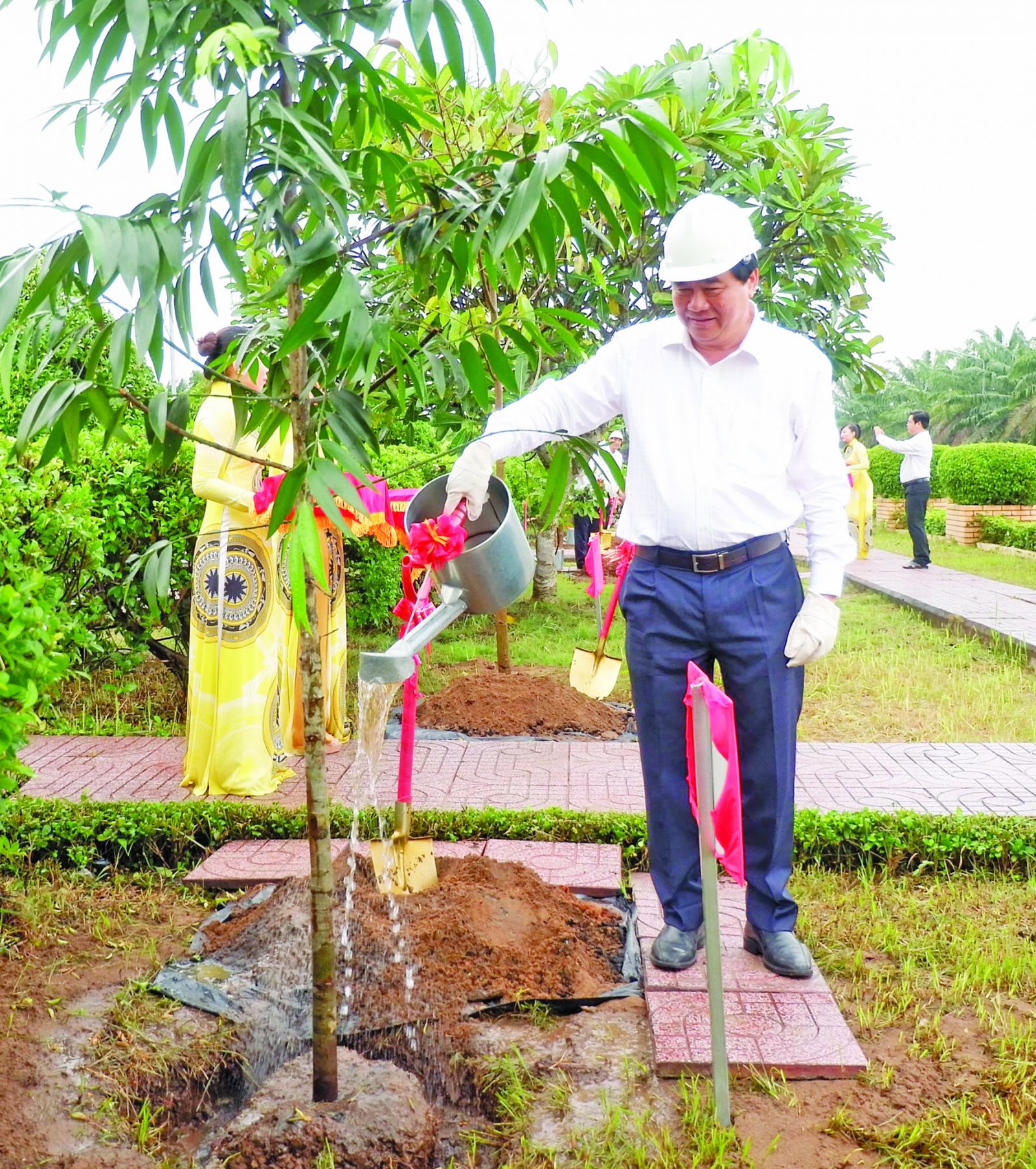 Bí thư Tỉnh ủy, Chủ tịch HĐND tỉnh - Phạm Văn Rạnh trồng cây do Khu di tích Chủ tịch Hồ Chí Minh tại Phủ Chủ tịch tặng