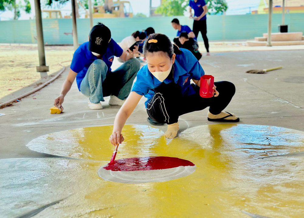Đoàn viên, thanh niên huyện Cần Đước thực hiện sân chơi cho học sinh Trường Tiểu học Tân Trạch