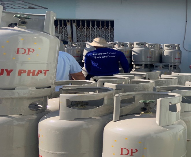 Chai LPG bị tạm giữ (ảnh Quản lý thị trường cung cấp)