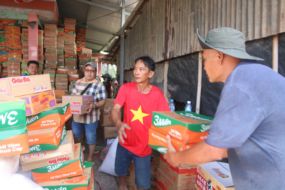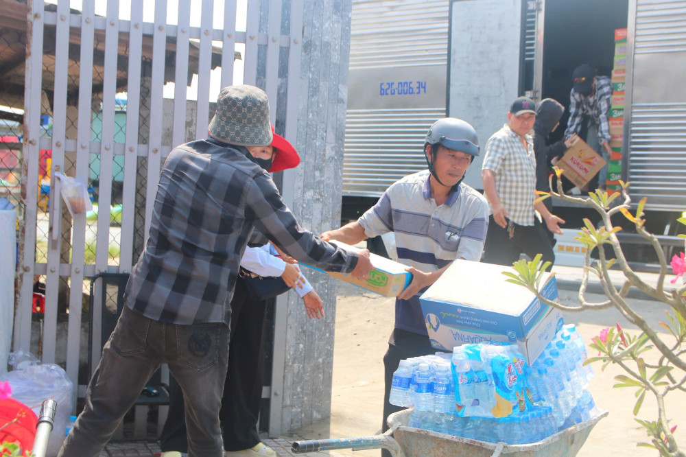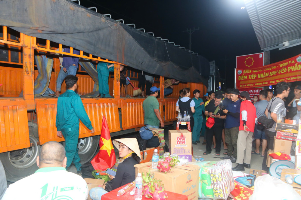 Nhiều thành viên tất bật với việc vận chuyển hàng hóa để kịp thời gian cho xe tải xuất phát ngay trong đêm