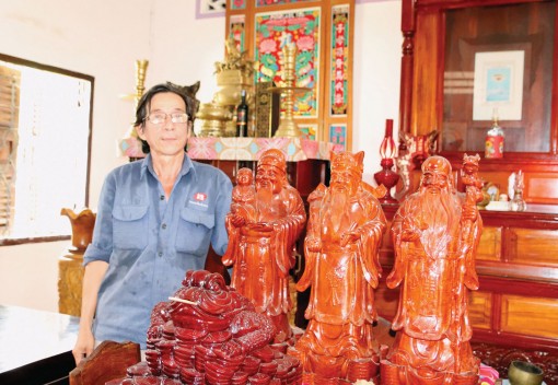 Đặt chiếc đục trên tay nằm ngay ngắn vào hộp đồ nghề, ông bắt đầu câu chuyện về điêu khắc gỗ. “Bất cứ ai đến với nghề cũng là để mưu sinh, ngành nghề nào cũng có cái khó riêng, đòi hỏi người học nghề phải yêu thích và đam mê thì mới làm được. Đối với điêu khắc gỗ, đến với nghề thì dễ nhưng để gắn bó lâu dài và trở thành thợ giỏi thì rất khó” - ông Thuận trải lòng.
