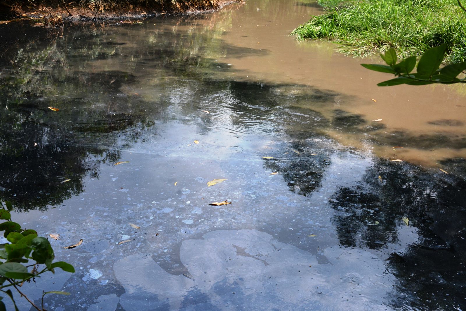 Nhiều đoạn tại kênh T1, nước xuất hiện váng dầu dày đặc trên mặt nước