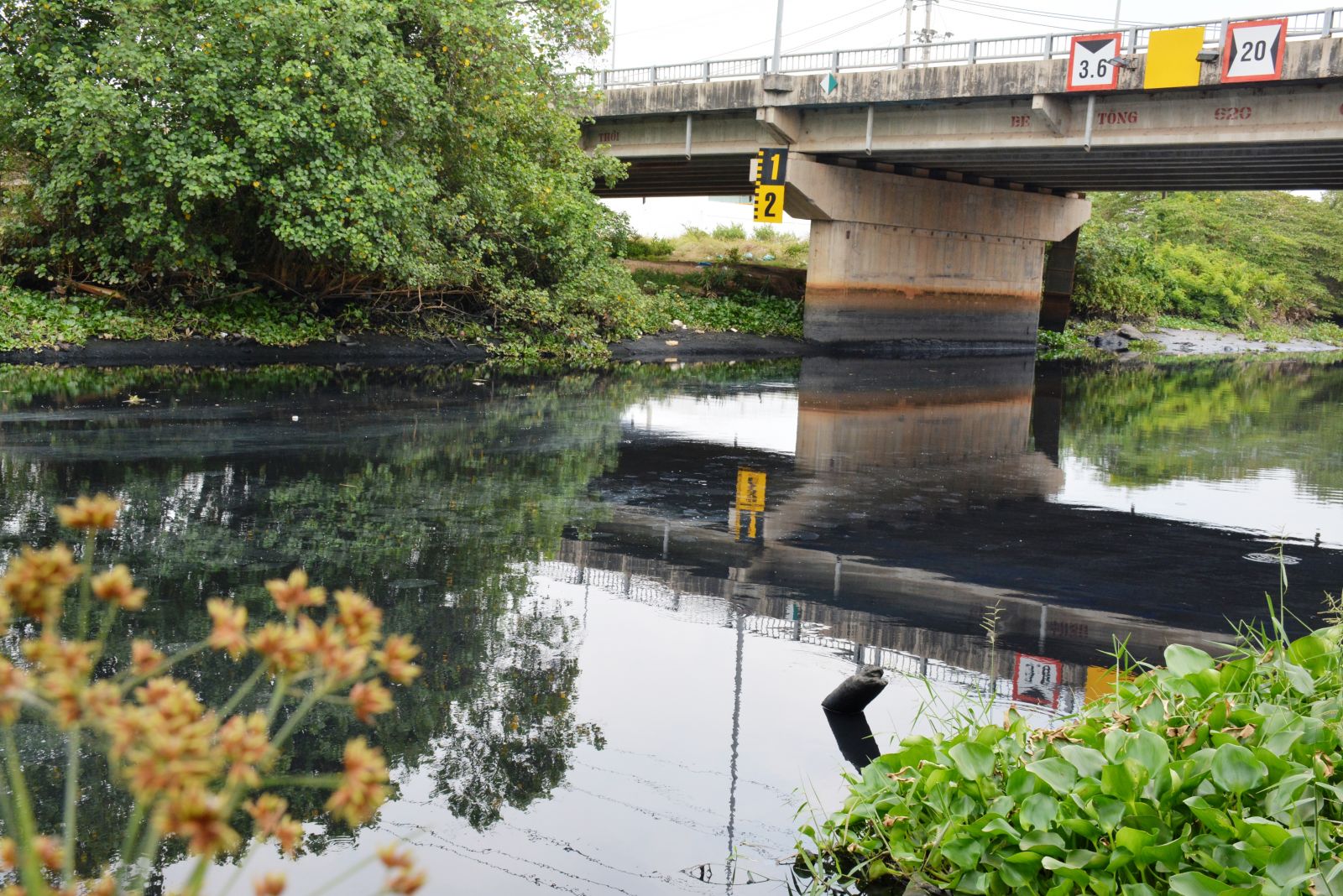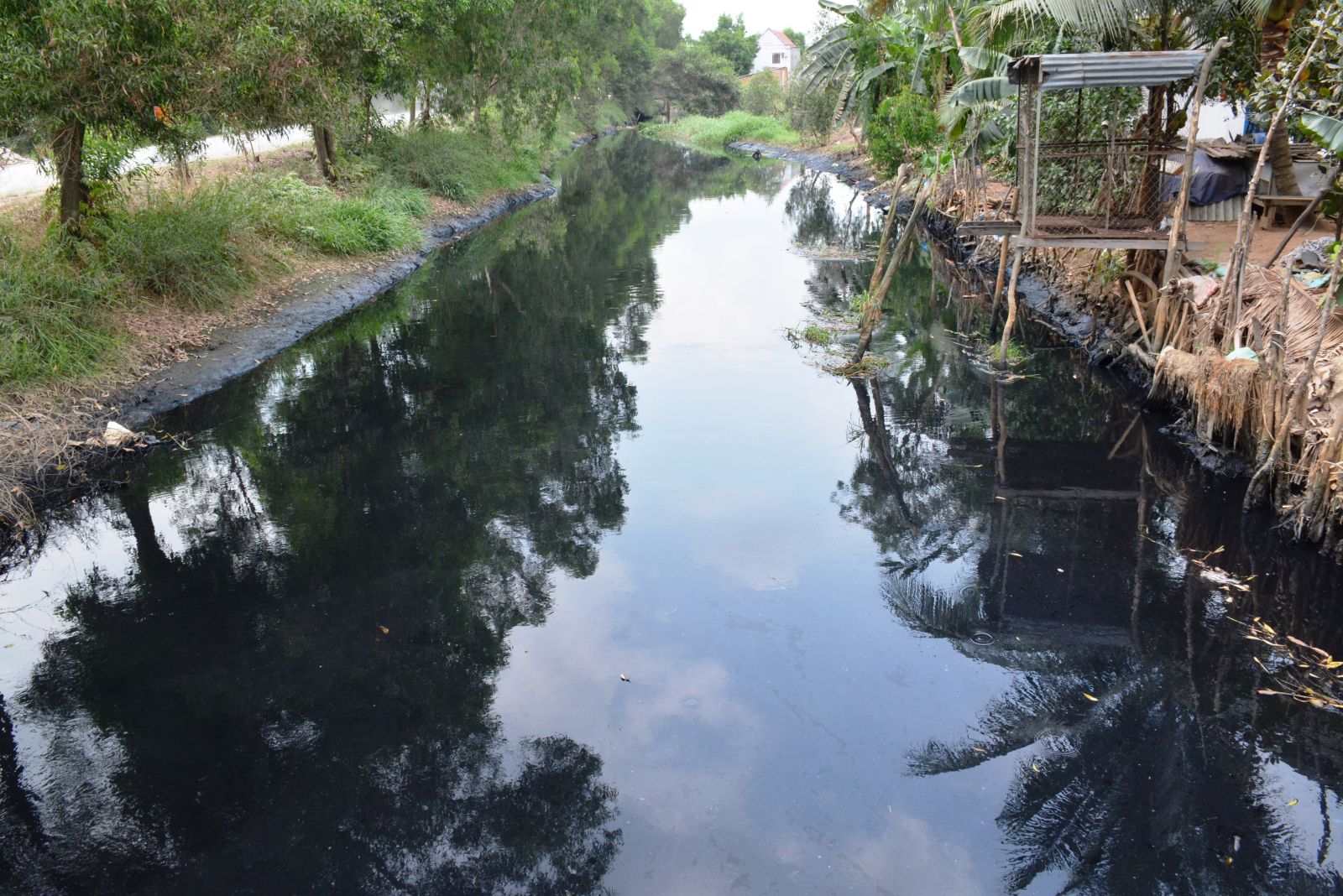 Khi nước cạn, cả dòng kênh là một màu đen kịt, ngoài nước thải ngoài xuất phát từ các cửa cống thuộc 2 Khu Công nghiệp Tân Đức và Hải Sơn thì còn có nước thải sinh hoạt của hàng ngàn hộ dân đang sinh sống dọc theo tuyến kênh này rồi đổ thẳng ra sông Vàm Cỏ Đông