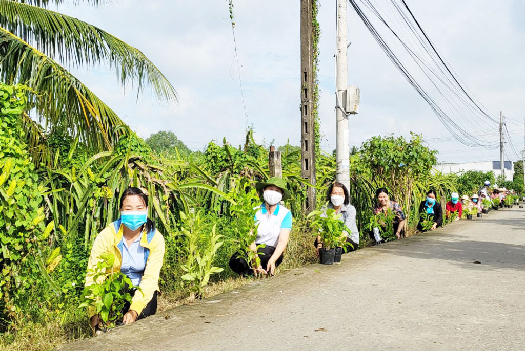 Đều đặn vào một ngày cố định trong tuần hoặc trong tháng, hội viên, phụ nữ huyện Châu Thành, tỉnh Long An hẹn nhau chăm sóc cây xanh, hoa, dọn vệ sinh trên những tuyến đường,… Đây là những việc làm được các chị thực hiện tuyến đường xanh, sạch, đẹp.