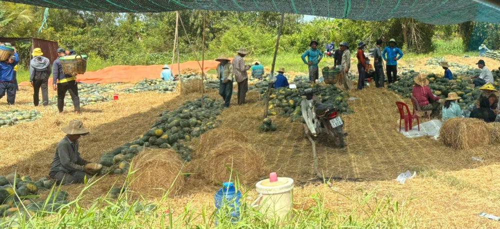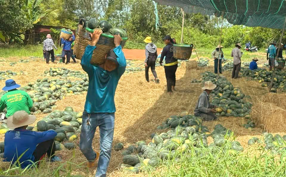 Nông dân Bình Hiệp thu hoạch 200ha dưa hấu vụ Hè Thu