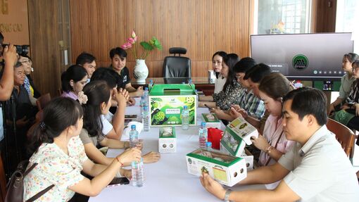 Du khách tham quan và tìm hiểu mãng cầu hữu cơ tại Hợp tác xã Dịch vụ Nông nghiệp Minh Trung