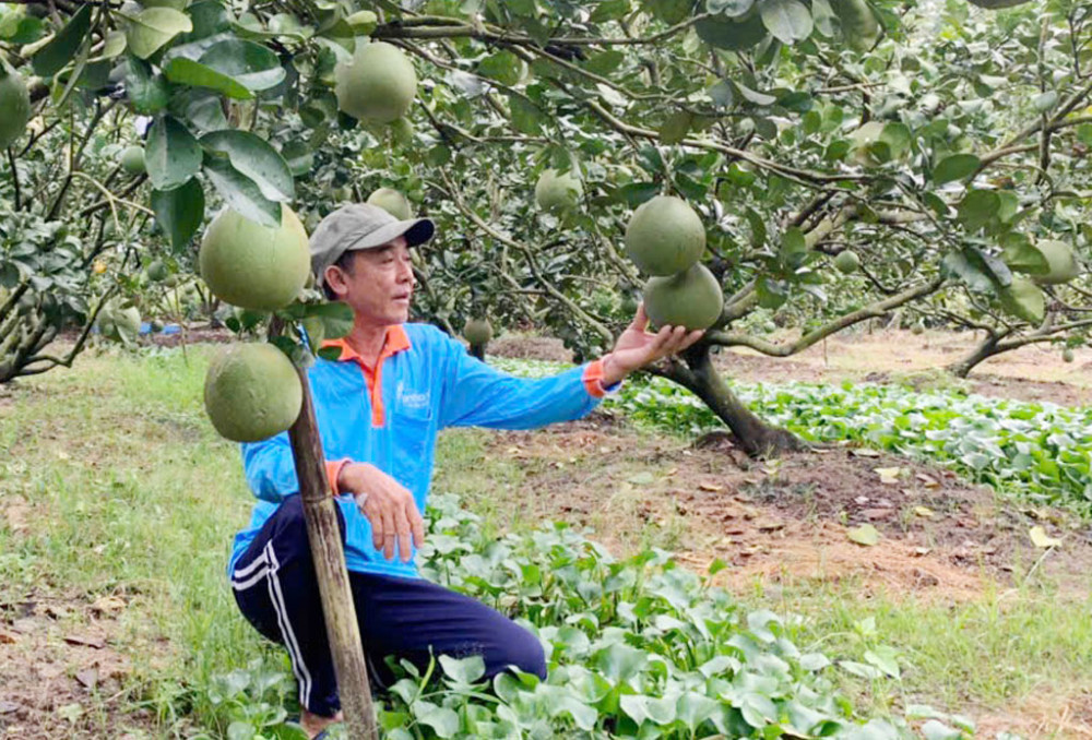 Dẫn chúng tôi đến thăm vườn bưởi, cây nào cũng trái sai trĩu cành, ông Lân cho biết: “Ưu điểm của bưởi da xanh dễ trồng, mau trái và cho năng suất cao. Trung bình mỗi trái nặng từ 1,5-2kg. Hiện tôi tập trung chăm sóc vườn bưởi, phòng, chống dịch bệnh, nhất là sâu đục trái, để bưởi đạt chất lượng cao, trái to, đẹp, bán được giá. Vụ bưởi tết năm nay, tôi dự kiến cung cấp cho thị trường khoảng 3 tấn trái”.